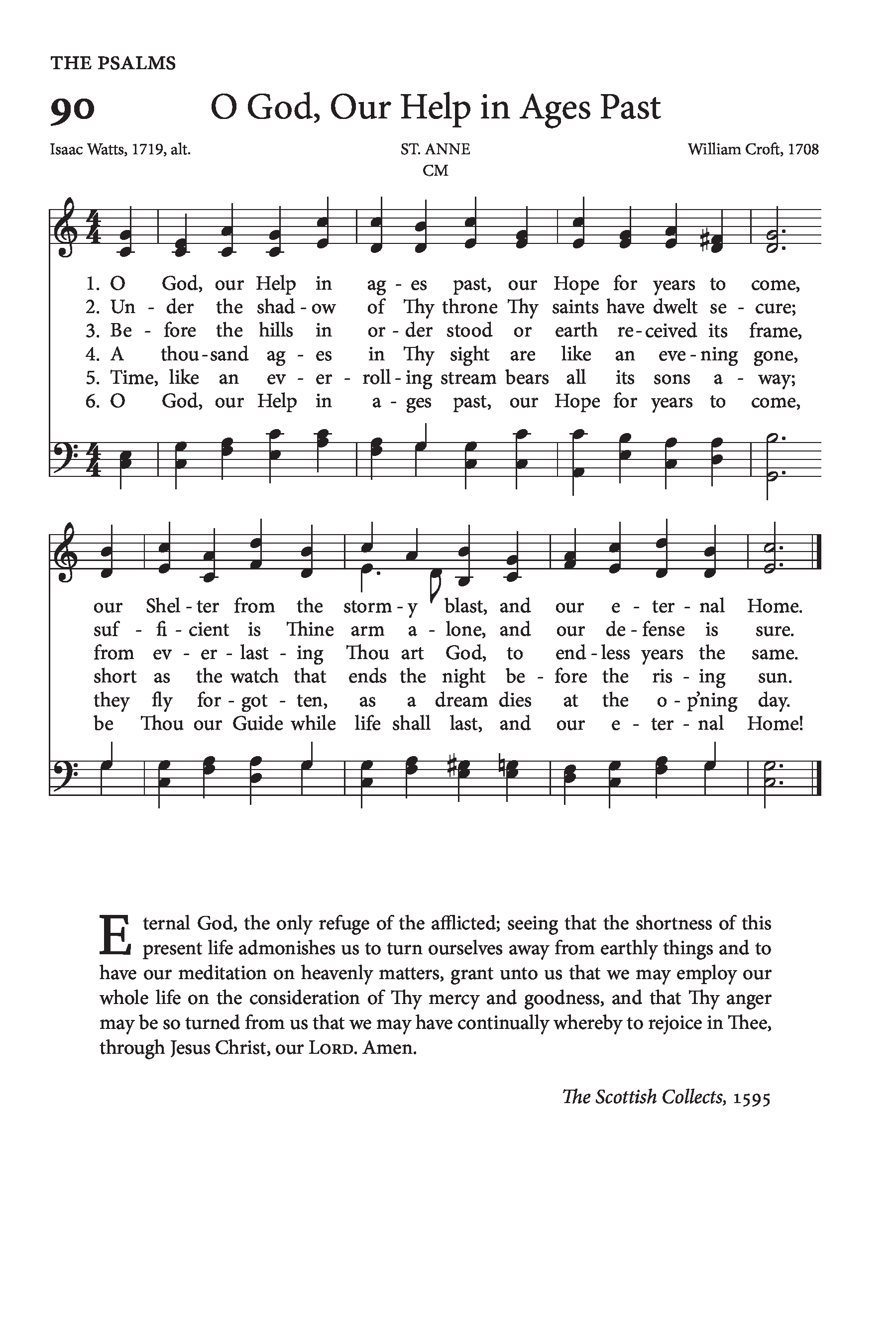 “O God, Our Help in Ages Past” stands as one of the most enduring hymns of the English-speaking world, a majestic paraphrase of Psalm 90 written by Isaac Watts in 1719. Known as the “father of English hymnody,” Watts revolutionized the way Christians sang by transforming Scripture into metrical verse that was not only faithful to biblical meaning but also expressive of deep personal devotion. This particular hymn is based directly on Psalm 90, a psalm of Moses that reflects on God’s eternal nature in contrast to the frailty and fleeting existence of humanity. Watts’s paraphrase captures the Psalm’s theological weight, especially the themes of divine sovereignty, human mortality, and the constancy of God’s protection through generations. Originally published in The Psalms of David Imitated in the Language of the New Testament, this hymn was part of Watts’s broader effort to Christianize the psalms for use in public worship, focusing on universal truths with New Testament insights.