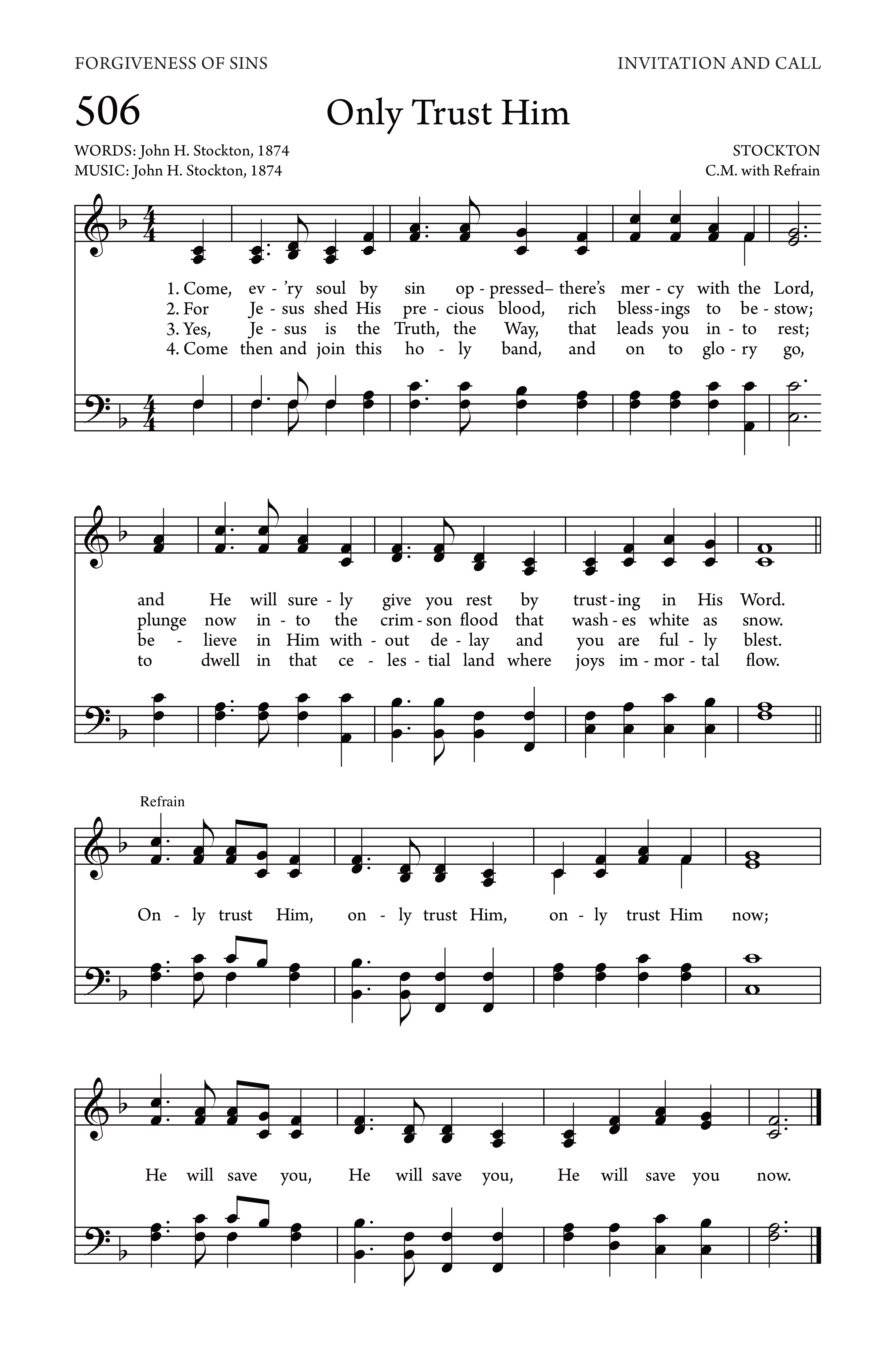 “Only Trust Him” continues to be a treasured hymn because of its clarity, sincerity, and grounding in Scripture. It speaks to every generation with the timeless truth that Jesus Christ is able and willing to save all who come to Him by faith. Its enduring use is a testimony to the power of the gospel, set to song.