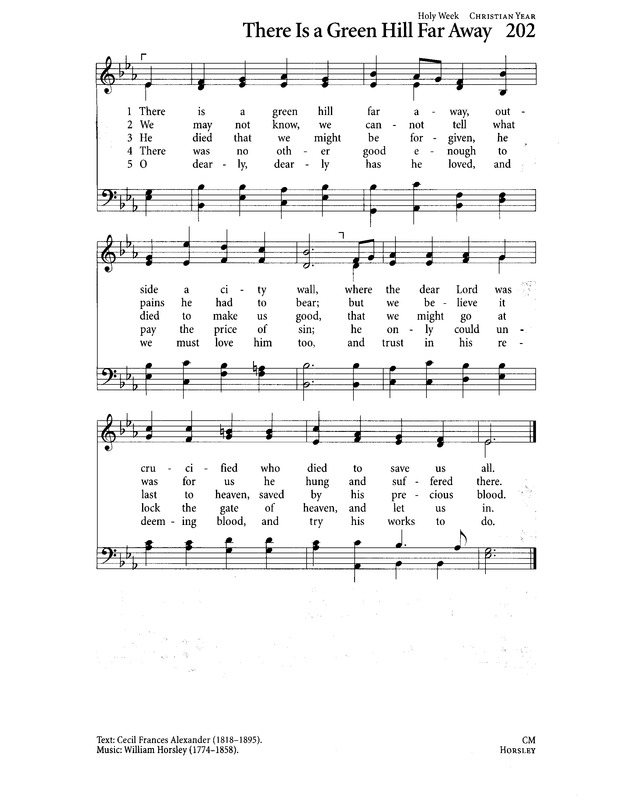 Together, Mrs. Alexander’s sincere and childlike faith, expressed through her poetry, and Stebbins’s heartfelt musical setting have given the Church a hymn of enduring tenderness and theological depth. There Is a Green Hill Far Away continues to lead hearts to the foot of the cross, reminding all believers—young and old—of the Savior’s love, sacrifice, and the hope of redemption through His blood.